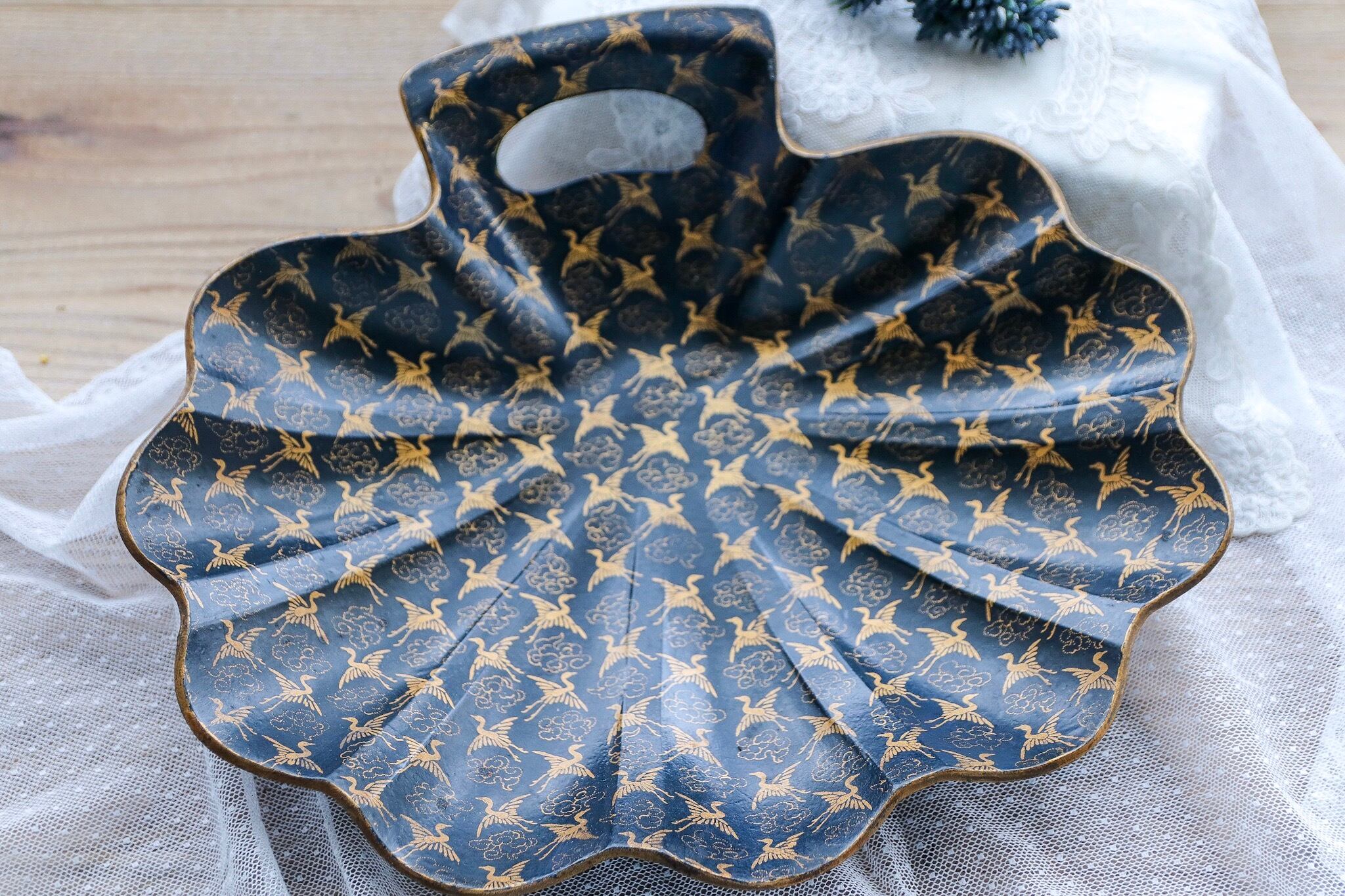 パピエマシェとは、東洋の食器に影響を受け作られたそうで紙を圧縮して膠(にかわ)を塗り作られた物で、お皿や箱やトレイ、小物入れなど色々なアイテムが造られていました。18世紀ごろから作られ始め、現在では製造されていない貴重なものです。