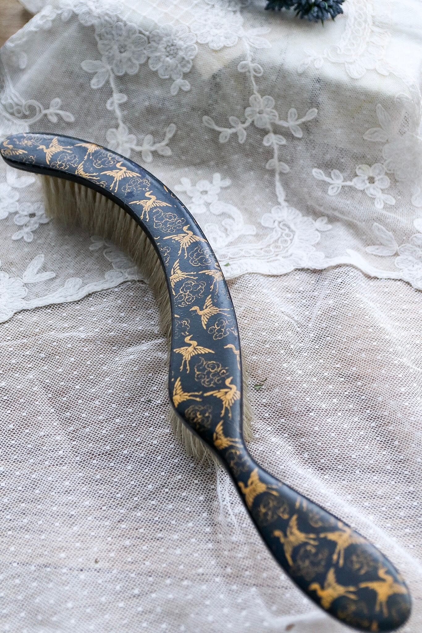 ナポレオン3世時代のパピマシエのプレートとブラシのセットです。レアな和柄で、装飾はほぼ剥げがない良い状態です♫ブラシの先の内側の先端部分に1箇所欠けがありますが、飾ったり実用する分には何ら支障はございません。反対に長い歴史を過ごしてきた名誉の負傷として愛でてあげたくなりますね^_^