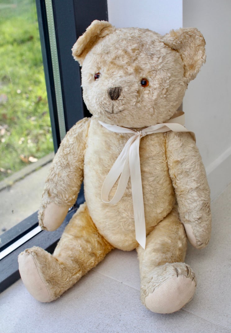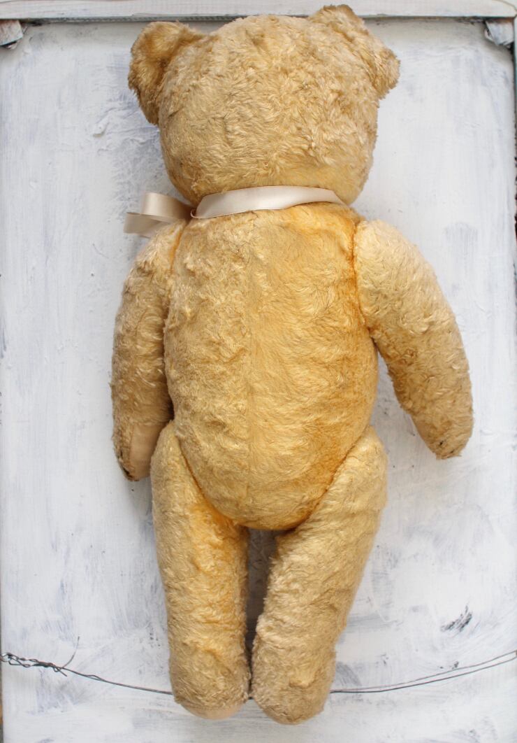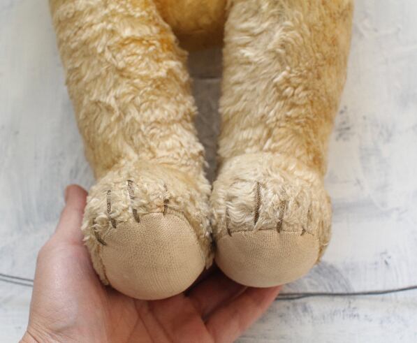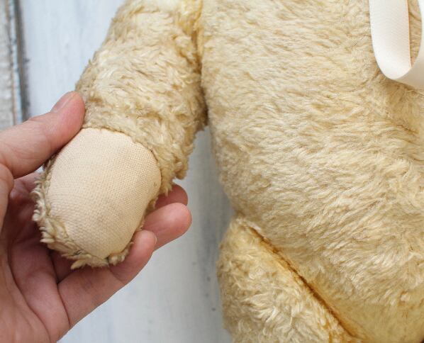 にっこりと微笑んでいるような癒し顔のベアちゃんです。手足の関節稼働 内部はワラ グラスアイです。