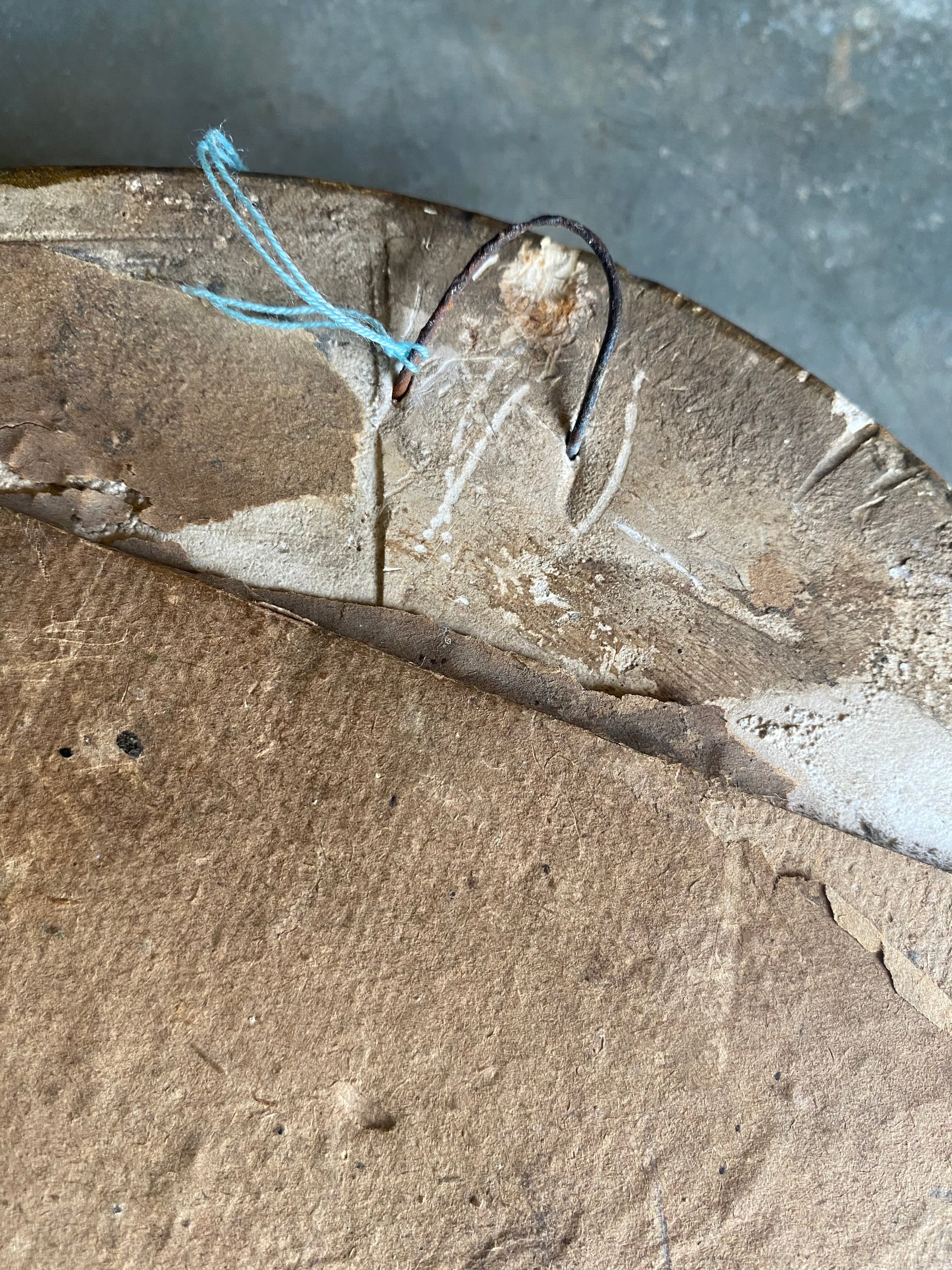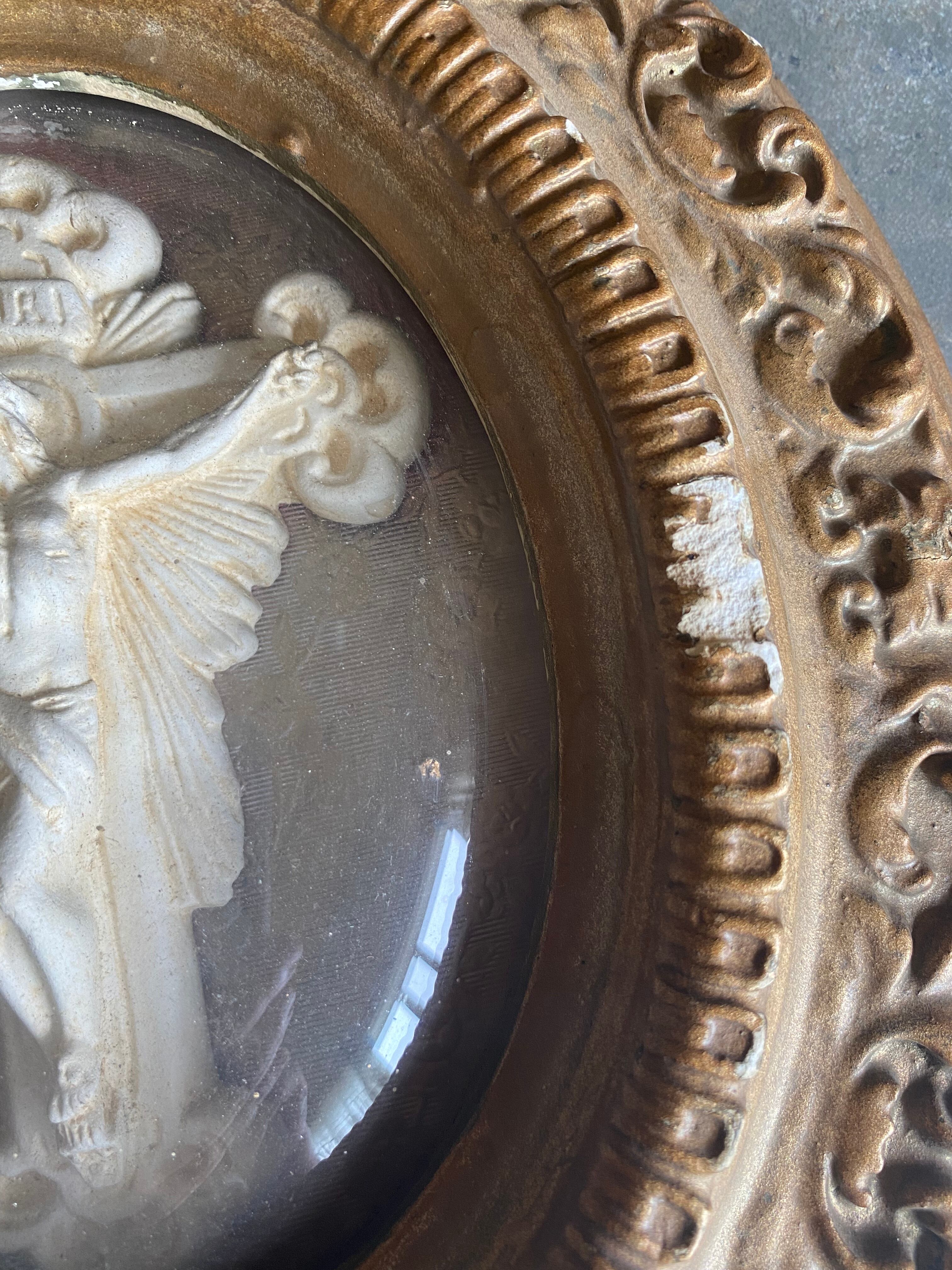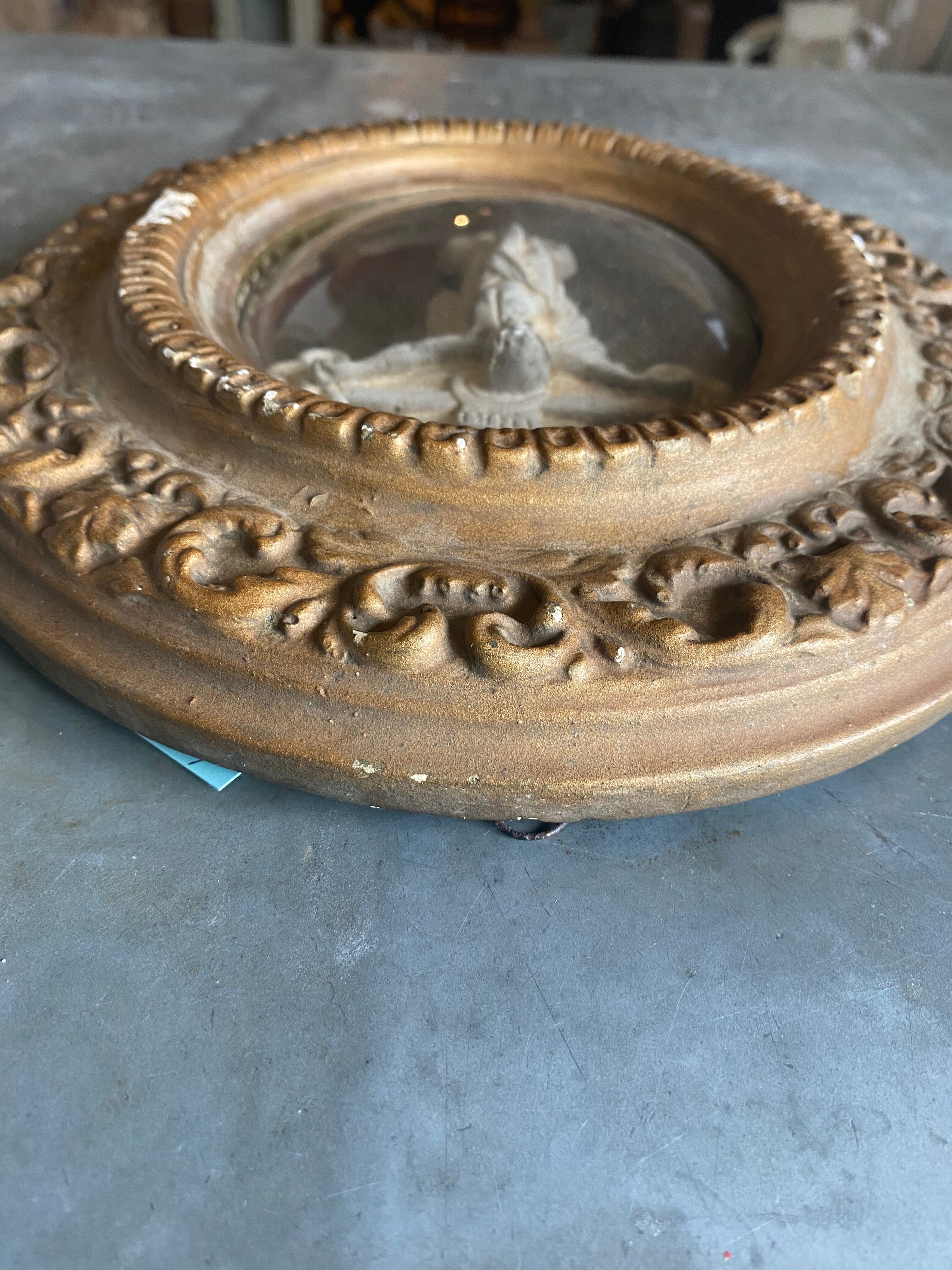 凸ガラスの下の十字架と石膏フレーム。フレームの縁に多少削れとペイントの剥げはありますが、大変重厚な雰囲気のあるアンティークです。