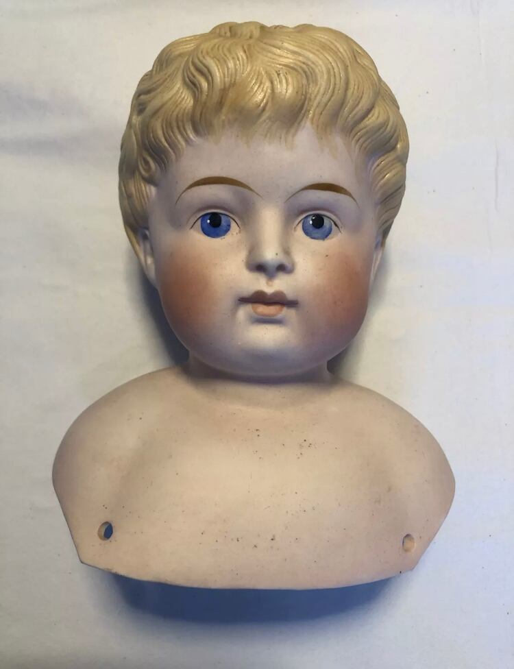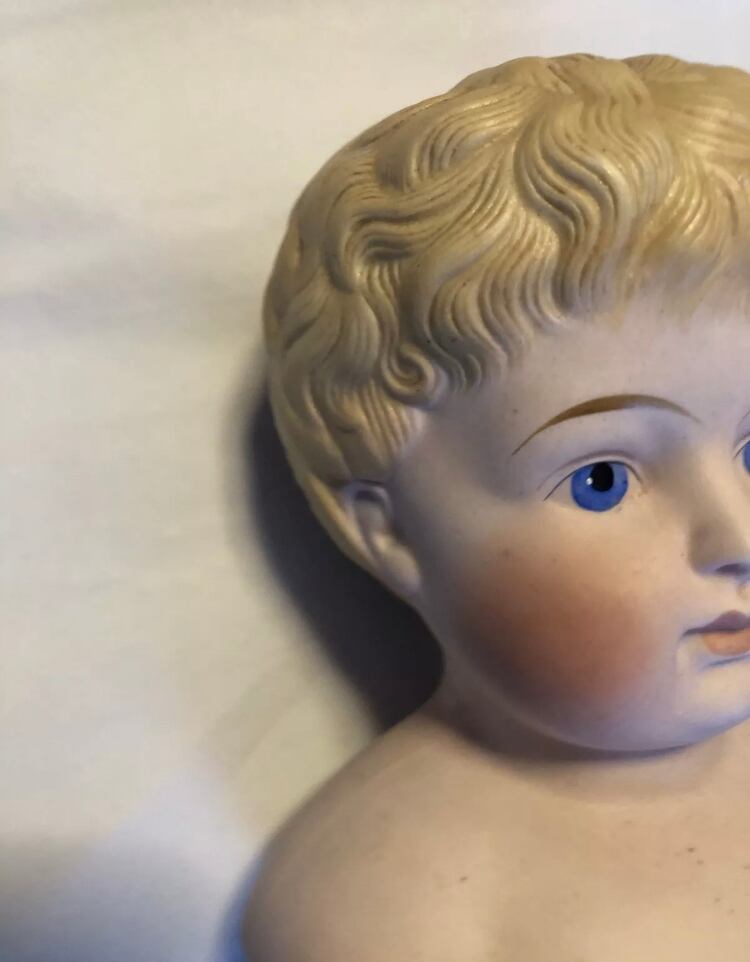 割れや欠けライン、釉薬の剥がれなどもない美品です。青い瞳とふっくらした頬の可愛い子ちゃんですね。このままディスプレイされても、身体を作ってあげてもきっと喜ぶのではないでしょうか。