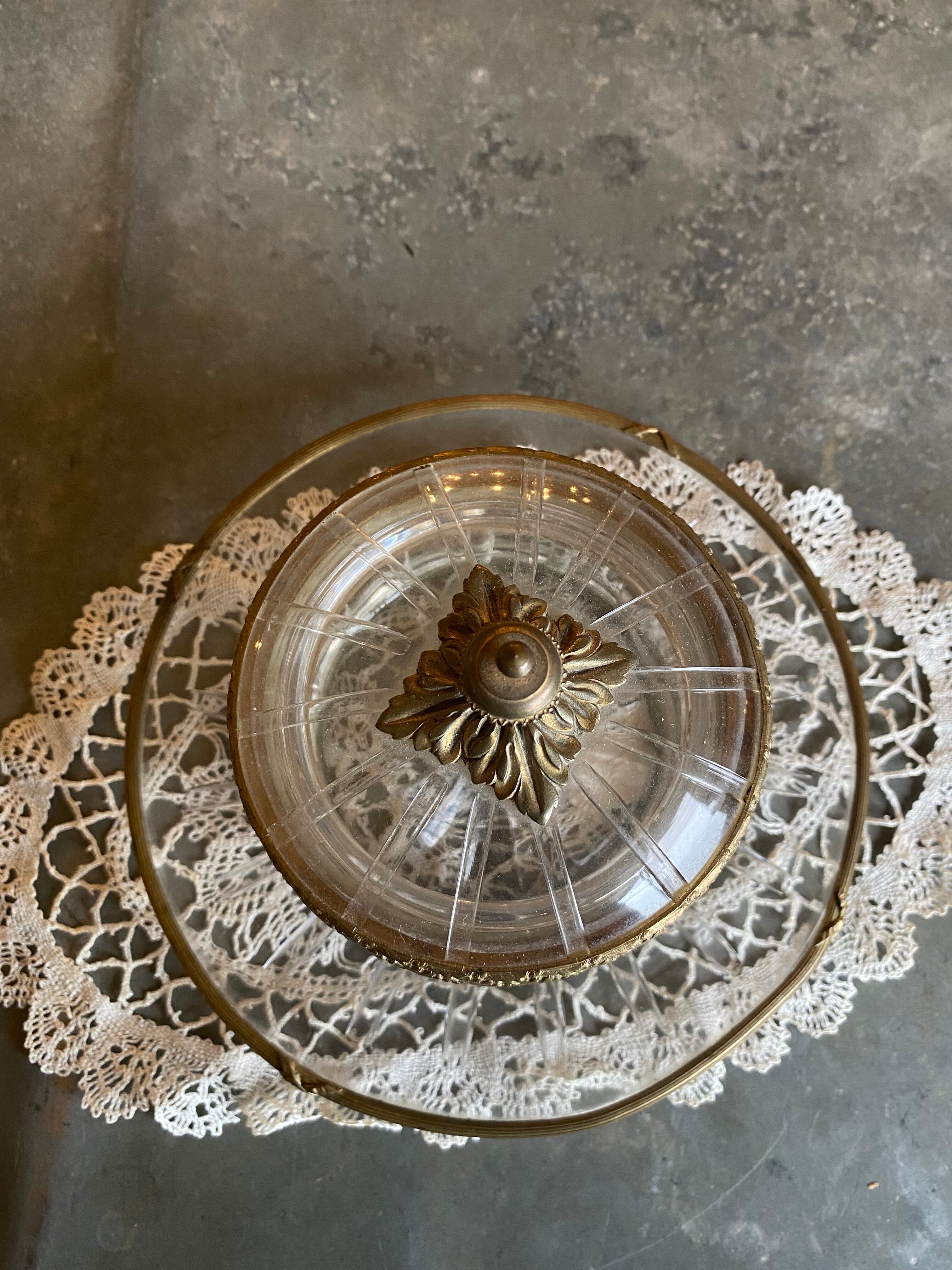 リボン好きにはたまらないルイ16世スタイルの蓋付きポットです。ガラスの状態も大変美品で、つけられているオルモル装飾も割れや欠けもなくとても美しいです♪多少の使用感はアンティークならではの風合いとして愛でていただきますよう。